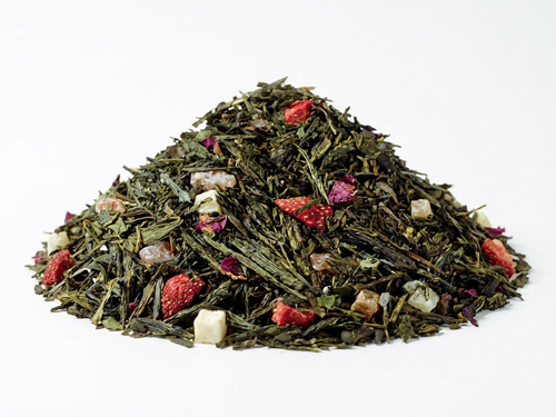 Een lichte melange van hoogwaardige groene theeën werken prima samen met de aroma’s van passievrucht, ananas en aardbei samen met de toegevoegde stukjes fruit en bloemen.