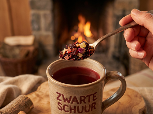 Een vruchtentheemelange met zoete kers en een lichte bananensmaak.