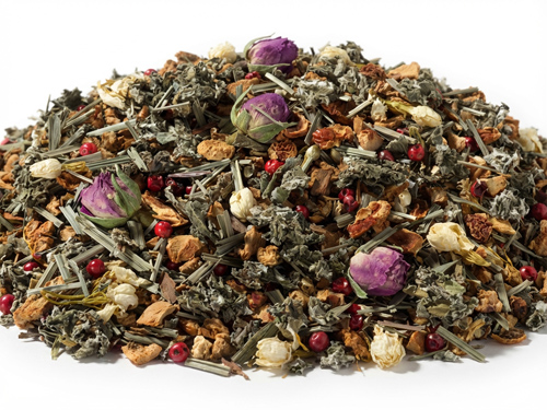 Citroengras, appel, rozenknopjes, framboosblad, kaneel, jasmijnbloesem en koriander