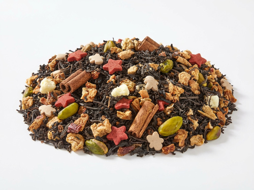 Zwarte thee (51%), appel, kaneelstokjes, pistachenoten en peer. Toevoeging; rode suikersterren en peperkoekmannetjes (suiker, rijsmiddel, plantaardige olie, koolzaad, glansmiddel, aardappelzetmeel, kleurstoffen E172 en E150c, concentraat van zoete aardappel, appel, radijs en kers)