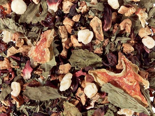 Honingmeloen, hibiscusbloem, vlierbes, pepermunt en rozenbottel